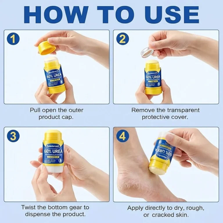 The stick glides across the heel rim and callused areas smoothly and effortlessly — clean, dry-touch, and done in under three minutes for both feet. The thin protective layer it leaves is barely perceptible on the skin. Most users apply in the morning before leaving the house and again in the evening before bed — letting the overnight application work alongside the body’s own natural cellular repair cycle. No socks. No greasy marks on bedding. No smell. Just effective chemistry working quietly while your heels recover.