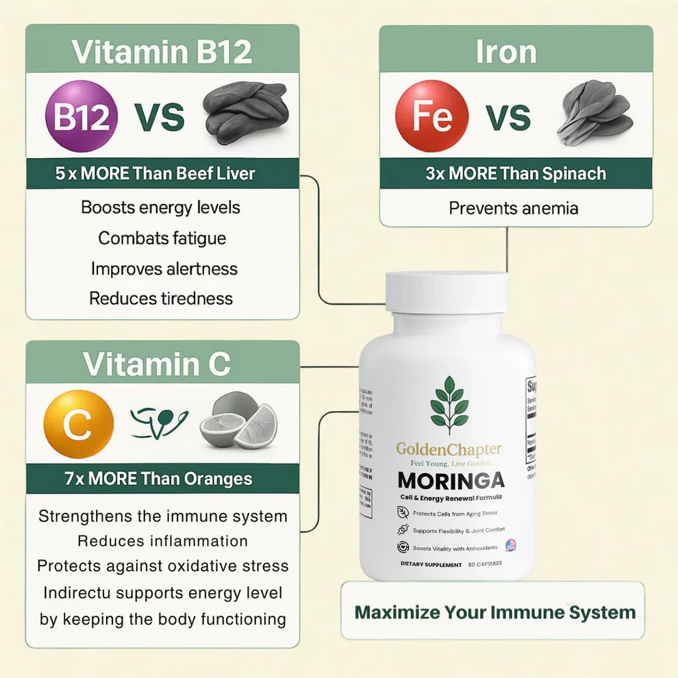 Where most standard energy supplements rely on high-caffeine blends that leave you jittery and crashing by mid-afternoon, GoldenChapter takes a completely different approach. The formula is built around moringa, one of the most nutrient-dense botanicals available, combined with complementary ingredients that support your body’s own natural energy systems. No stimulants. No artificial additives. No afternoon slump waiting on the other side.