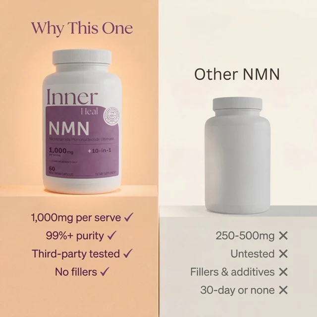 InnerHeal Total Restore Complex supports cellular energy and mitochondrial health. Help reduce the appearance of fatigue and brain fog with our premium NMN formula