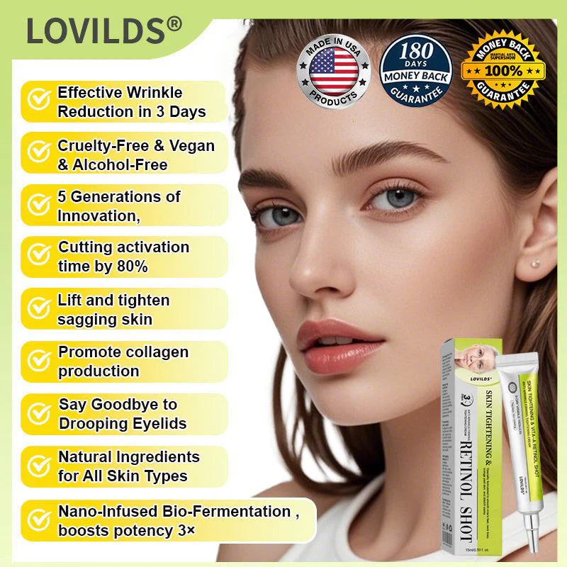 Top USA dermatologists consider LOVILDS® Skin Tightening & Vita-A Retinol Shot a breakthrough in at-home anti-aging skincare.
