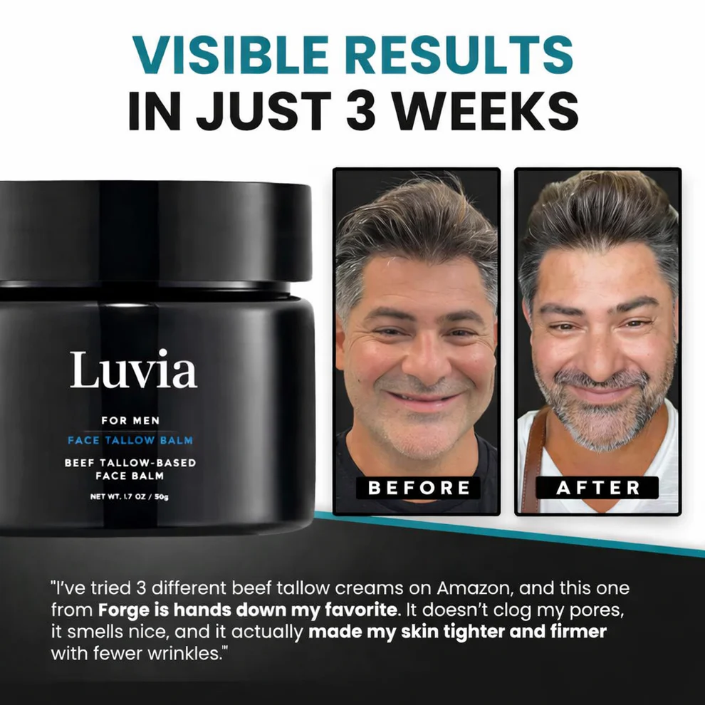 Wrinkle Repair Tallow Balm has a smooth, rich texture that warms and melts into the skin on contact — absorbing cleanly without leaving a greasy or heavy residue. The scent is subtle and natural. Most men apply a small amount to the face and neck once daily and notice the difference in skin softness and comfort almost immediately. The visible changes — firmer texture, softer lines, a generally more rested and healthier-looking complexion — develop progressively over the three-phase process across three to six weeks of consistent use. The kind of transformation that other people start commenting on before you have fully registered it yourself.