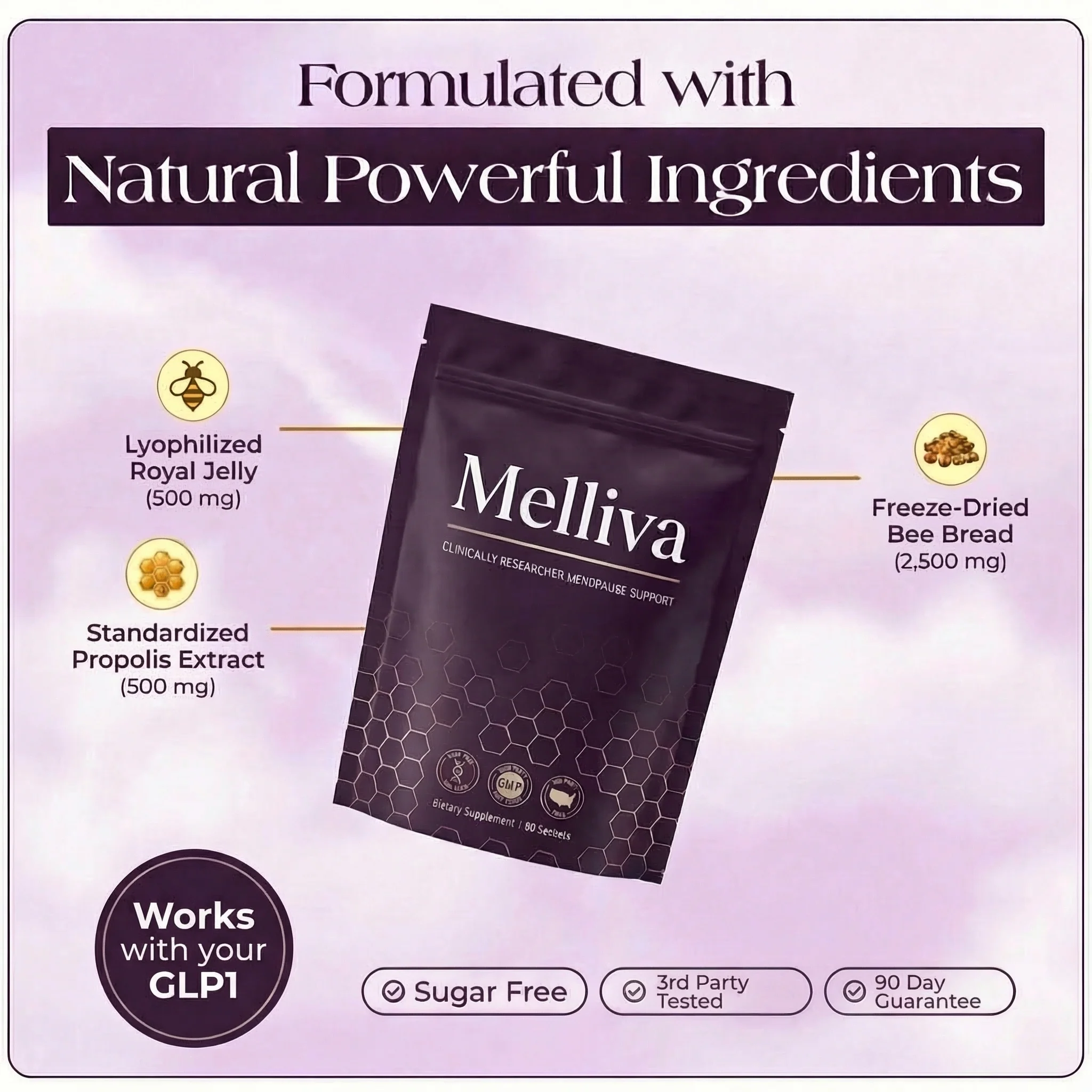Is Melliva safe to use long term? The formula uses natural ingredients — royal jelly, bee pollen, and propolis — that are well tolerated for ongoing daily use. If you have allergies to bee products, please consult your healthcare provider before use.