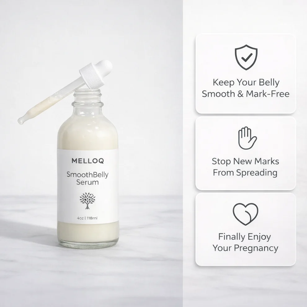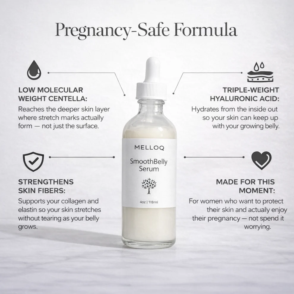 Where most standard stretch mark creams and belly butters focus on surface hydration and comfort, SmoothBelly Serum is formulated with penetration depth in mind. It’s a more targeted approach to pregnancy skin support — designed around the biology of how stretch marks form rather than the marketing of how they look afterwards.