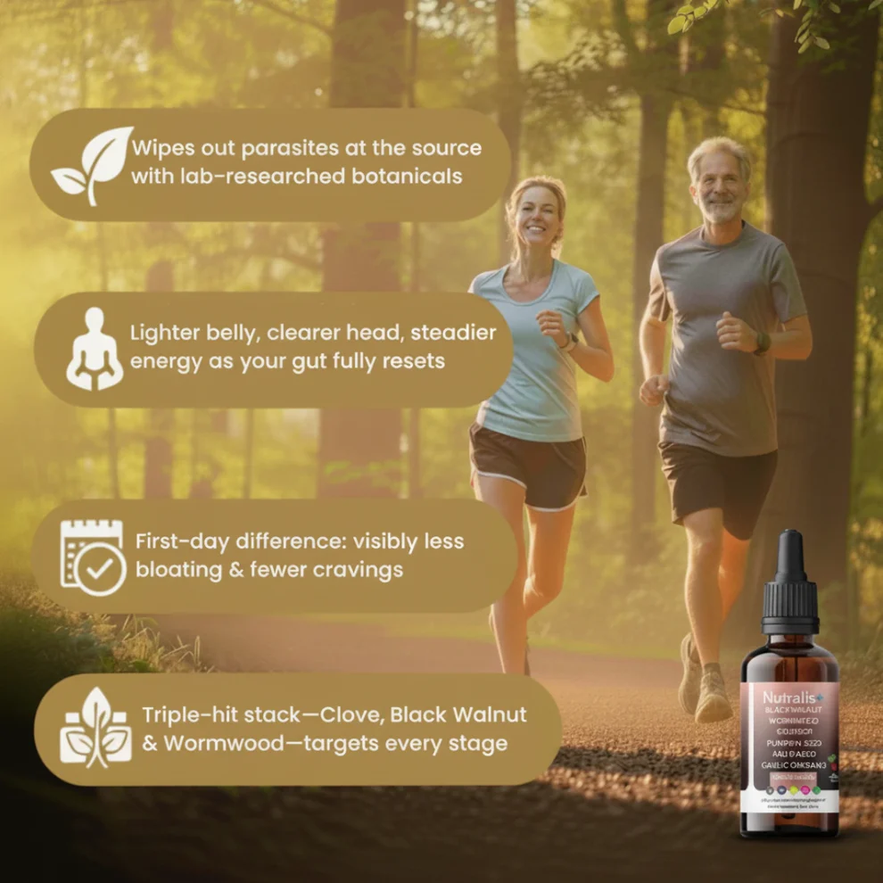 Just one full dropper a day of this powerful Parasite Cleanse help flush out the hidden invaders wrecking your digestion, energy, and focus — so your body finally works with you, not against you.