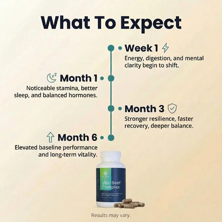 NutraVantix Vital Beef Complex capsules are clean, unflavoured, and entirely free from the taste and smell concerns that deter most people from eating organ meats directly. The daily serving integrates into a morning routine effortlessly. The progression is gradual and foundational — subtle improvements in energy and mental clarity in the first week, noticeable improvements in stamina, sleep quality, and hormonal balance through the first month, and the kind of deep structural resilience and elevated physical baseline that builds progressively over three to six months of consistent daily supplementation.
