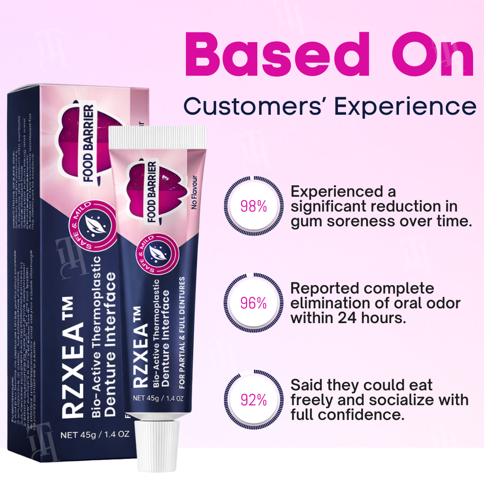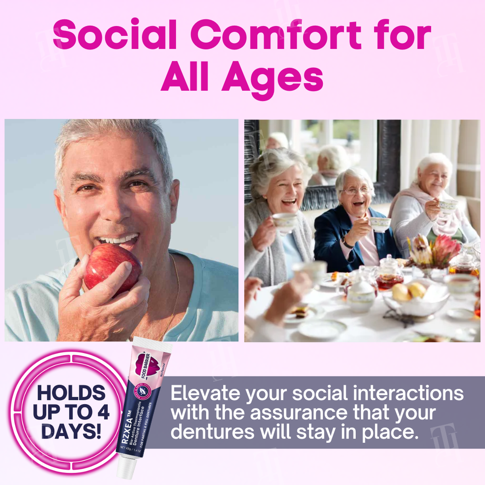 RZXEA Denture Adhesive with 4-day hold, CBD, Hyaluronic Acid and Manuka Honey for secure fit, gum healing and fresh breath