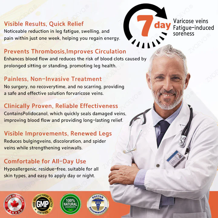 ✔ 92% reduction in visible varicose veins and leg fatigue within 7 days